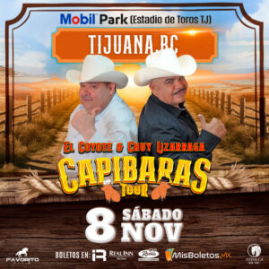 ¡El Capibaras Tour está a la vuelta de la esquina! Este 8 de noviembre, el Estadio Mobil Park se transformará en el escenario de la música sinaloense con la presentación de dos leyendas: El Coyote y Chuy Lizárraga.