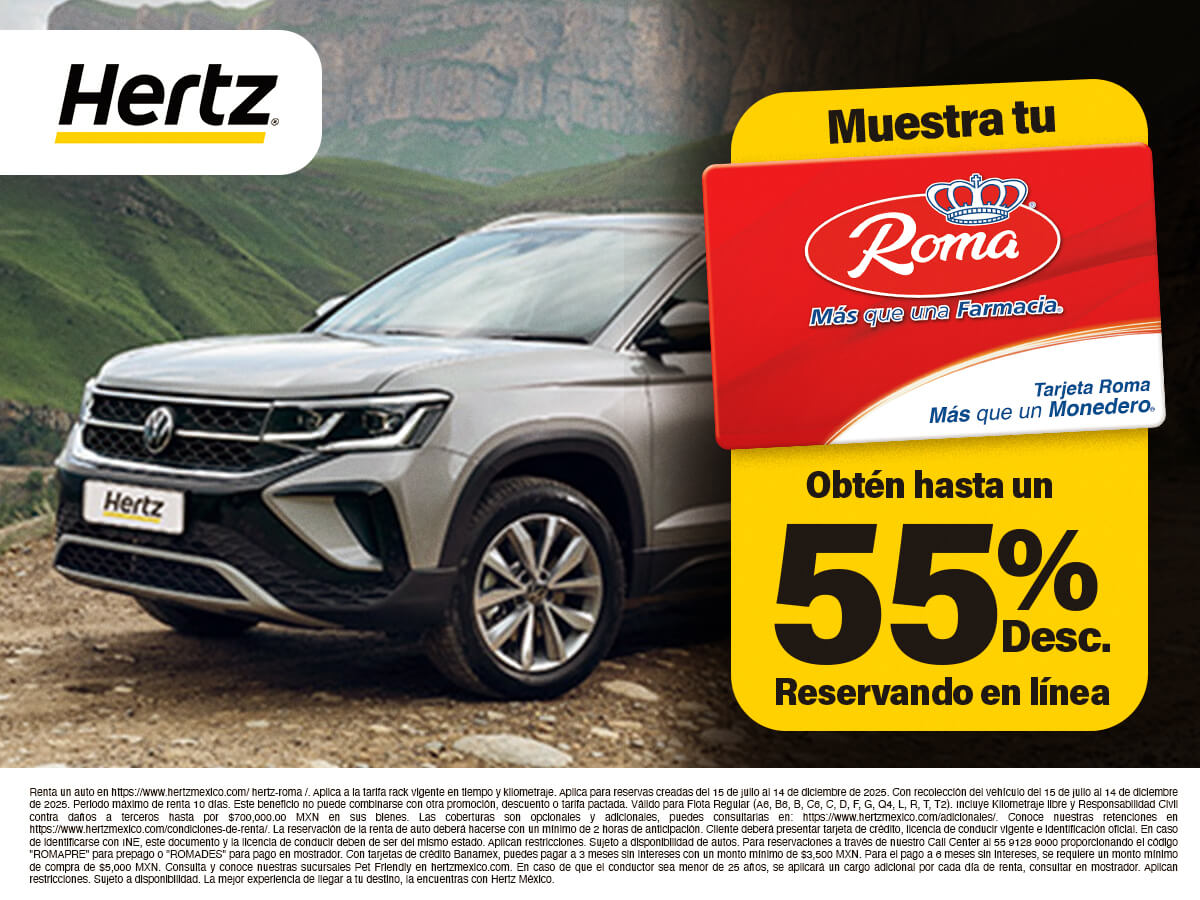 Aplican restricciones. Válido únicamente para reservas creadas del 15 de julio al 14 de diciembre de 2025. Con recolección del vehículo del 15 de julio al 14 de diciembre de 2025. Periodo máximo de renta 10 días. Este beneficio no puede combinarse con otra promoción, descuento o tarifa pactada.