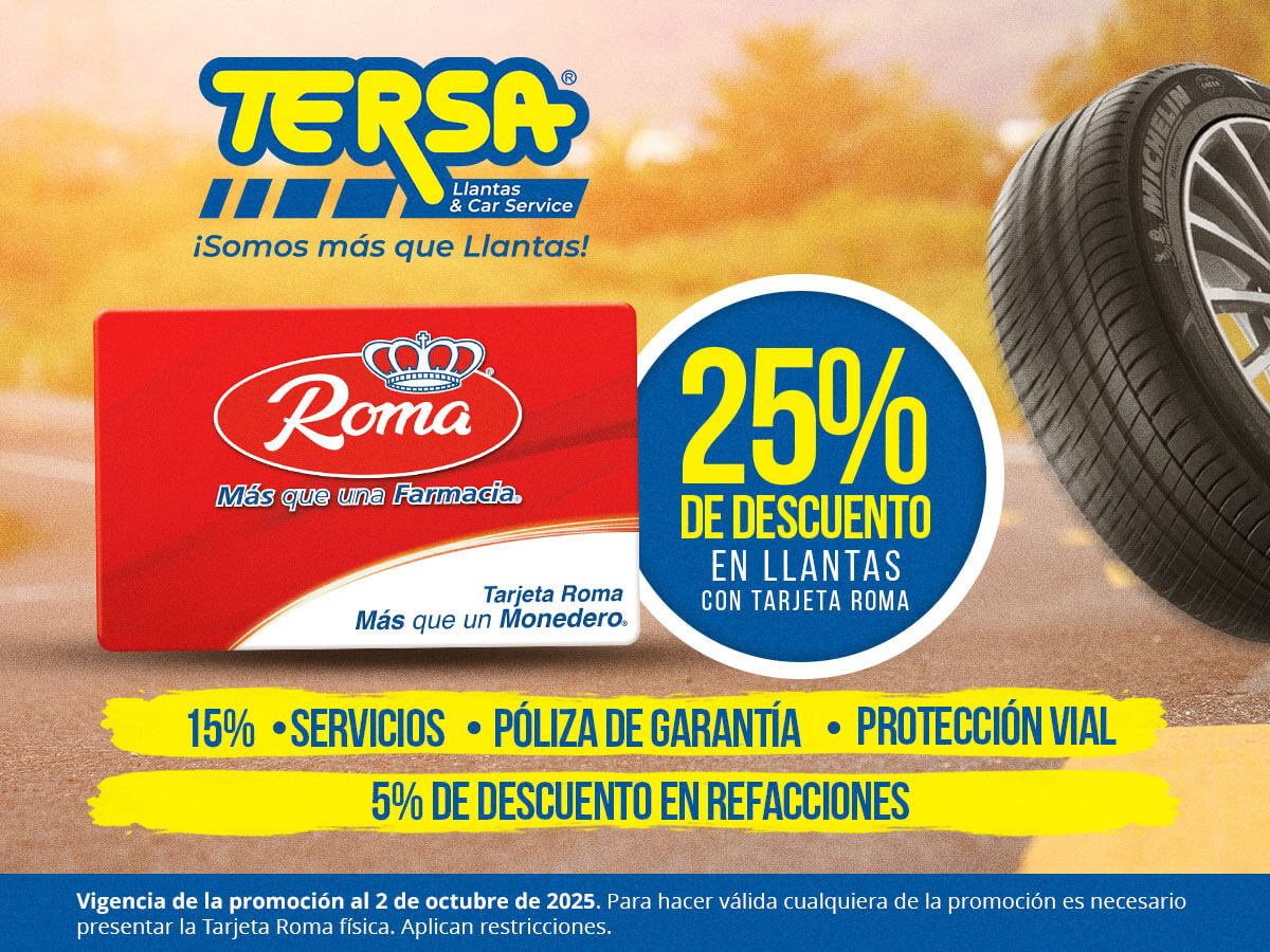 En tu próxima visita a Tersa, muestra tu Tarjeta Roma y obtén: